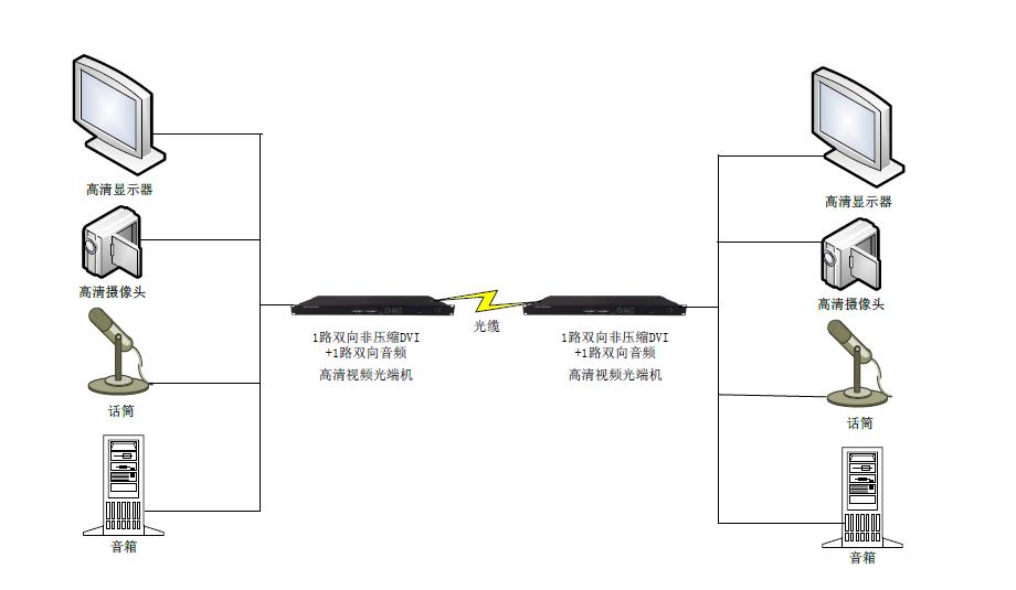 在光纖上傳輸1路雙向非壓縮DVI+1路雙向音頻 |